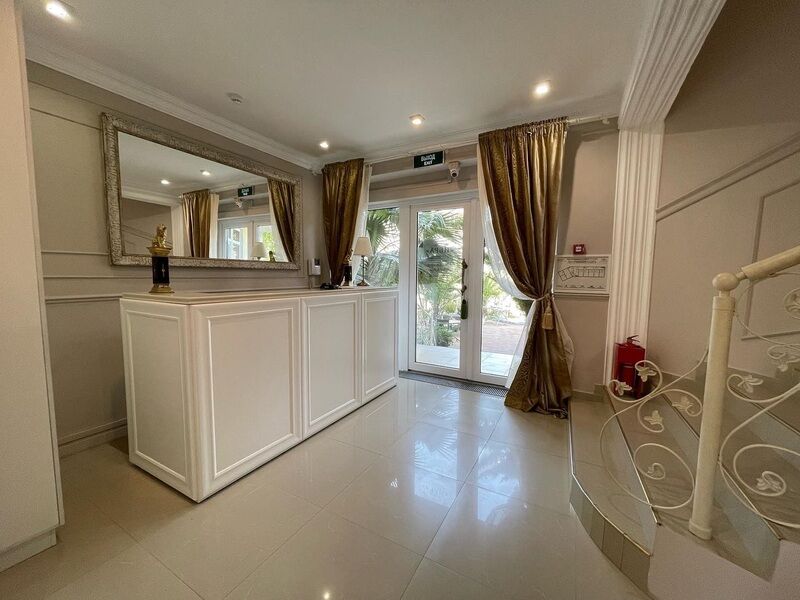 Специализирующийся на семейном отдыхе отель не только предлагает комфортные условия размещения, но и предоставляет разнообразный детский досуг. На небольшой благоустроенной территории высажены цветущие кустарники, пальмы и другие экзотические растения. Четырехэтажный корпус с мансардой включает в себя однокомнатные и двухкомнатные номера улучшенных категории. В каждом номере установлен кондиционер, есть плазменный телевизор, электрочайник, фен. В ванных комнатах подготовлены наборы косметических принадлежностей.