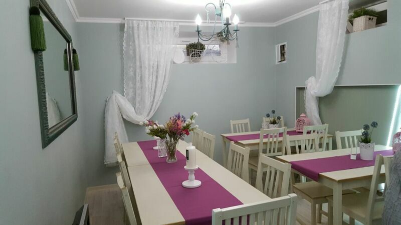 В теплое время года в отеле работает столовая, также есть пиццерия, летнее кафе и бар. На территории установлены беседки, шатры, есть мангал и даже тандыр, кроме того, предусмотрена общая кухня, оснащенная необходимой бытовой техникой и посудой.