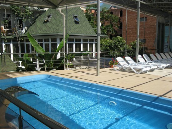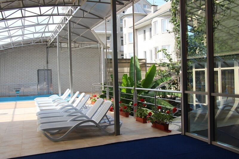 Тип бассейна: открытый бассейнРядом с бассейном: шезлонгиРазмеры: 5 x 7 мПлощадь: 35 м²Время работы: от 08:00 до 20:00Жемчужиной гостевого дома является открытый бассейн, пользующийся неизменной популярностью у гостей. Его изюминка — раздвижная прозрачная крыша, которая открывается рано утром, позволяя наслаждаться бодрящими солнечными лучами и бризом с моря. В знойный полдень крыша закрывается, создавая приятную тень и защищая от палящих лучей. А в случае дождя она надежно укроет от непогоды.