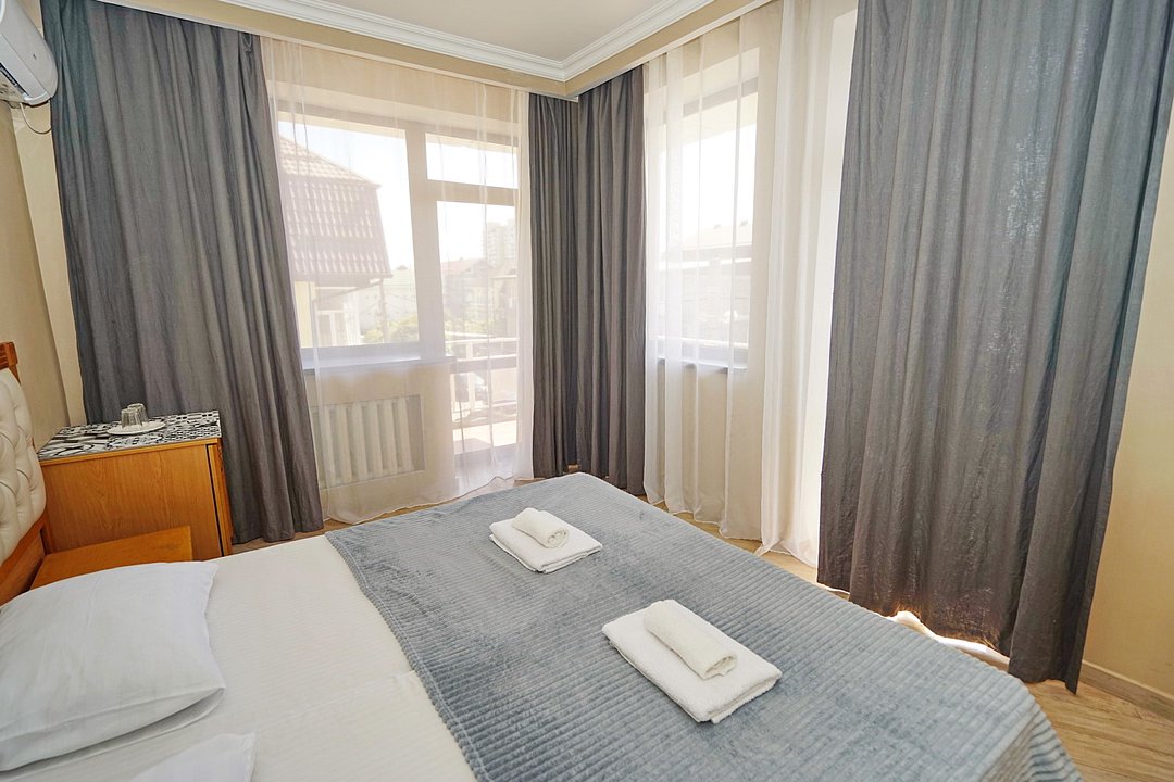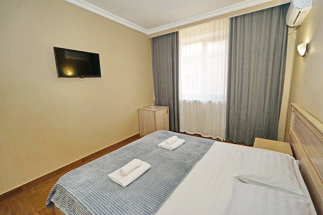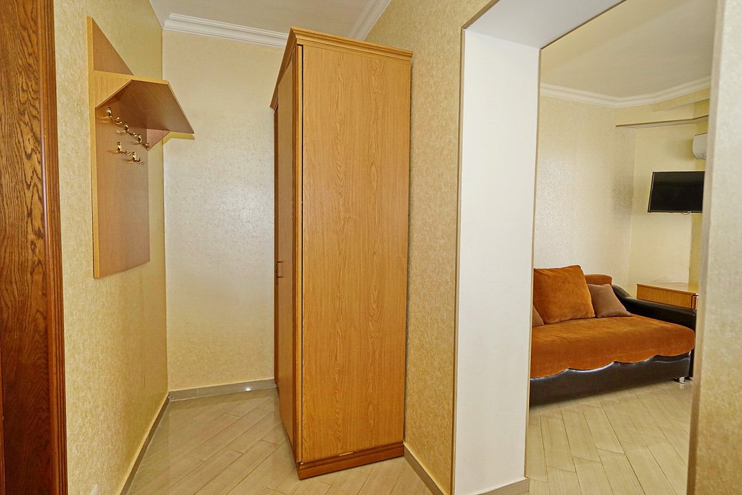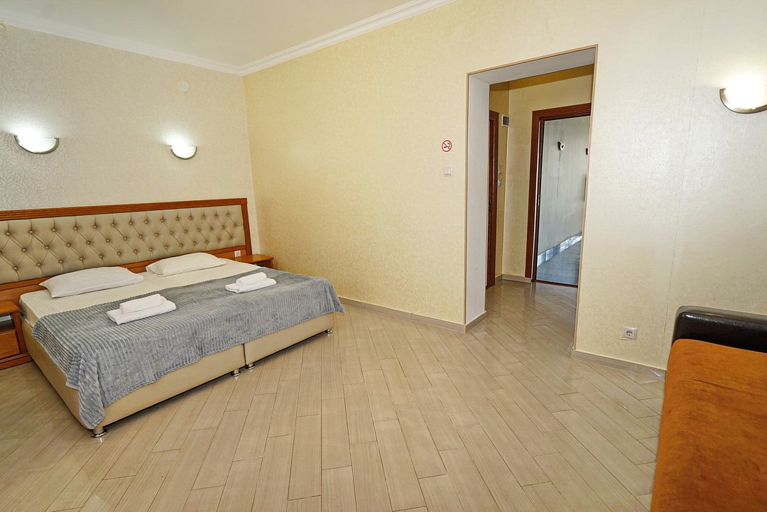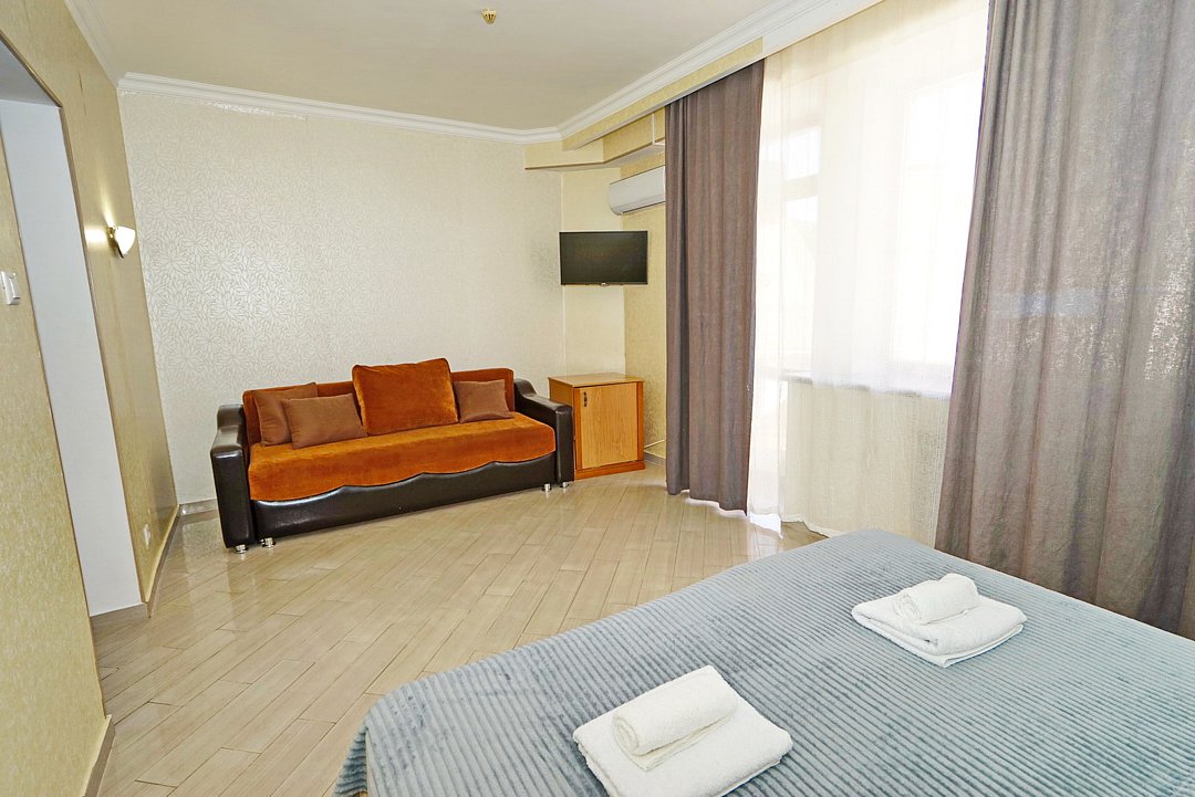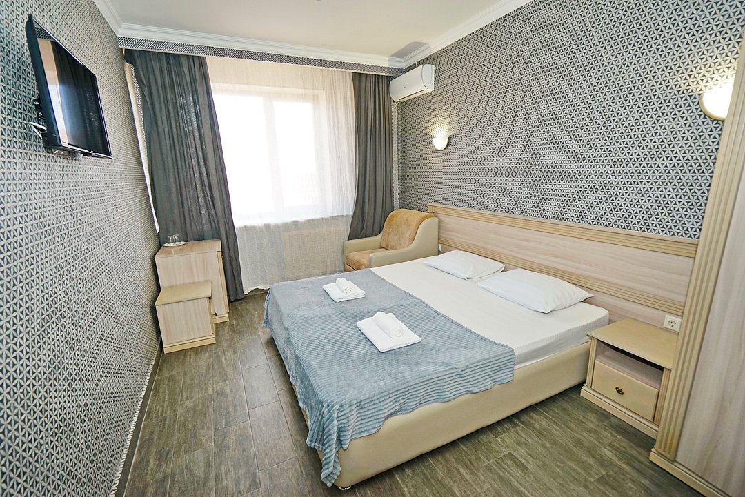 Комфортные номера со всей необходимой техникой. Прикроватные тумбы, стол, стулья, шкаф, вешалки, зеркало, постельное белье, полотенца, фен, телевизор, чайник, интернет, кабельное, кондиционер, холодильник, санузел совмещенный.