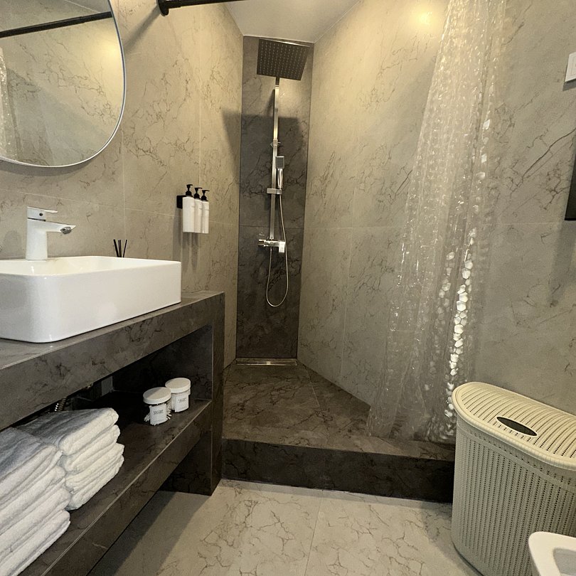 Также в номере есть телевизор, холодильник, кондиционер, стиральная машина, фен, чайник, микроволновка, плита, духовой шкаф, утюг с гладильной доской, сейф, интернет, кабельное, сушилка для одежды, гигиенические принадлежности в ванной, постельное белье, полотенца.