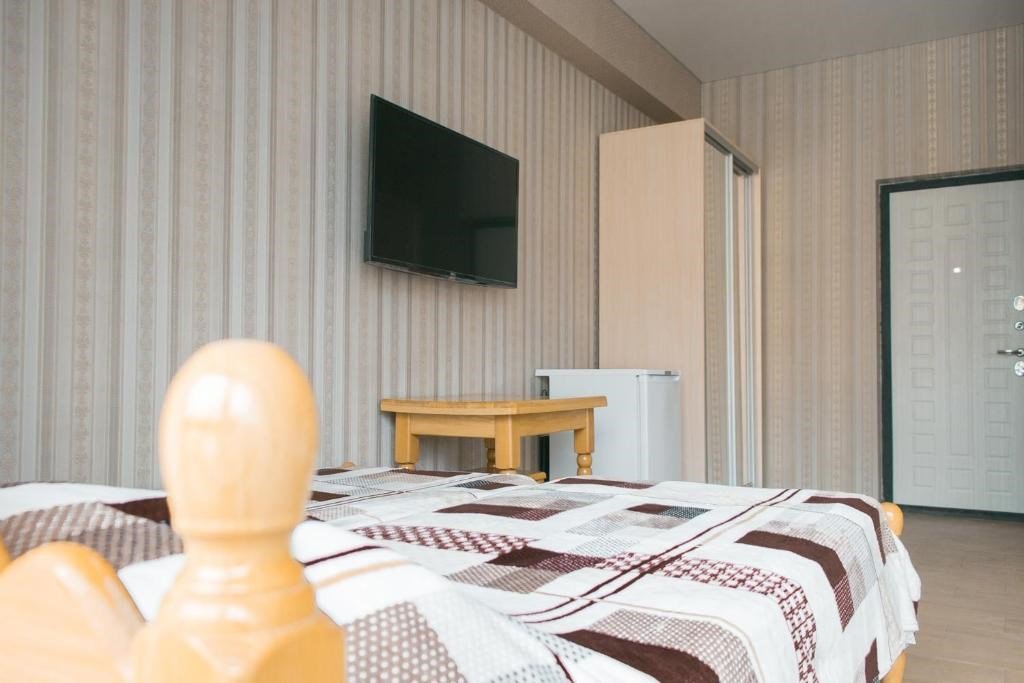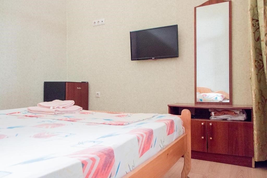 телевизор, Wi-Fi, холодильник, кондиционер, банные полотенца, двуспальная кровать, шкаф для одежды, зеркало, плиточное покрытие, раздельный санузел, общая ванная комната, вид во двор, тумба, санузел на этаже, сплит-система, сушилка для белья, цифровое тв, телевизор с плоским экраном, душ на этаже, телевизор со Smart TV, номер для некурящих, вешалки-плечики, без питомцевВ номере