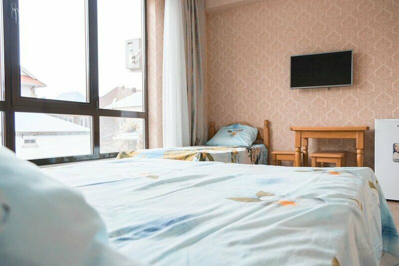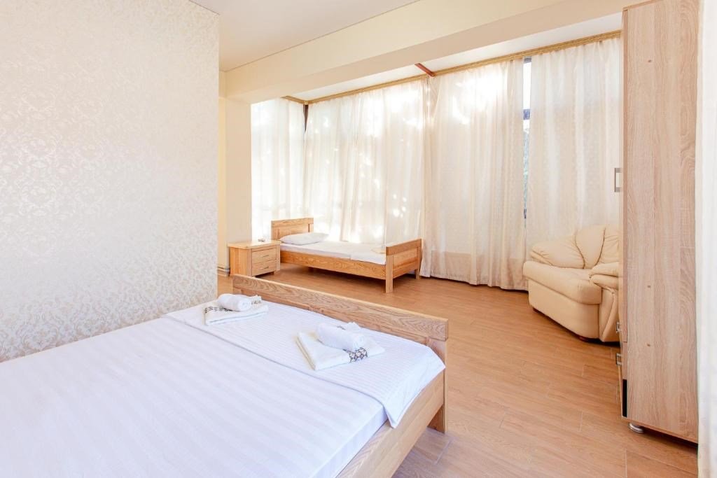 телевизор, Wi-Fi, холодильник, кондиционер, двуспальная кровать, две односпальные кровати, тумбы, шкаф для одежды, вешалки, зеркало, общая ванная комната, вид во двор, тумба, санузел на этаже, сплит-система, цифровое тв, телевизор с плоским экраном, душ на этаже, телевизор со Smart TV, номер для некурящих, уборка номера, вешалки-плечики, частный двор, без питомцев, бассейнВ номере