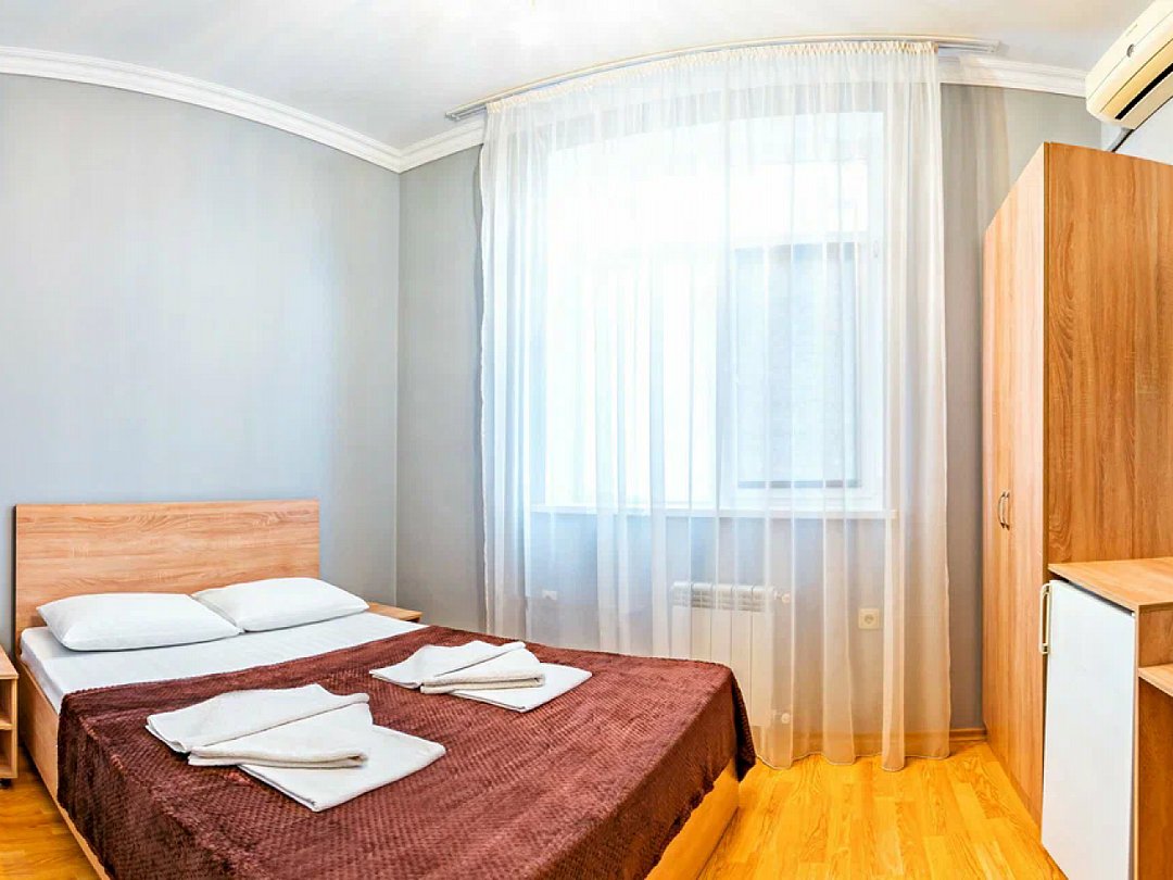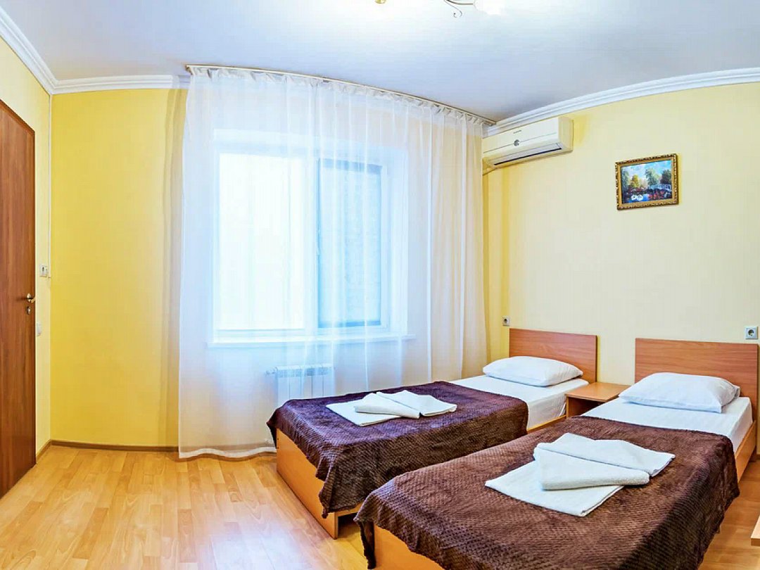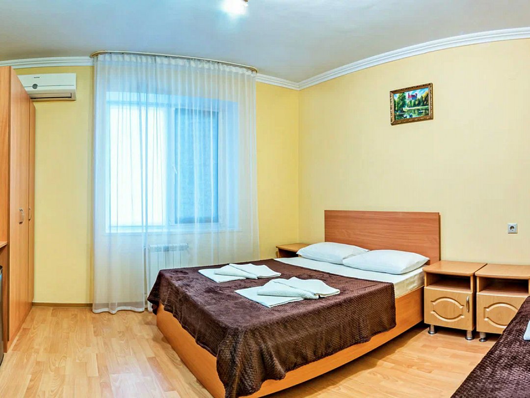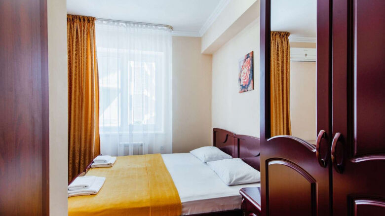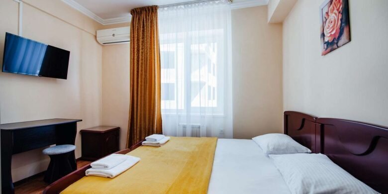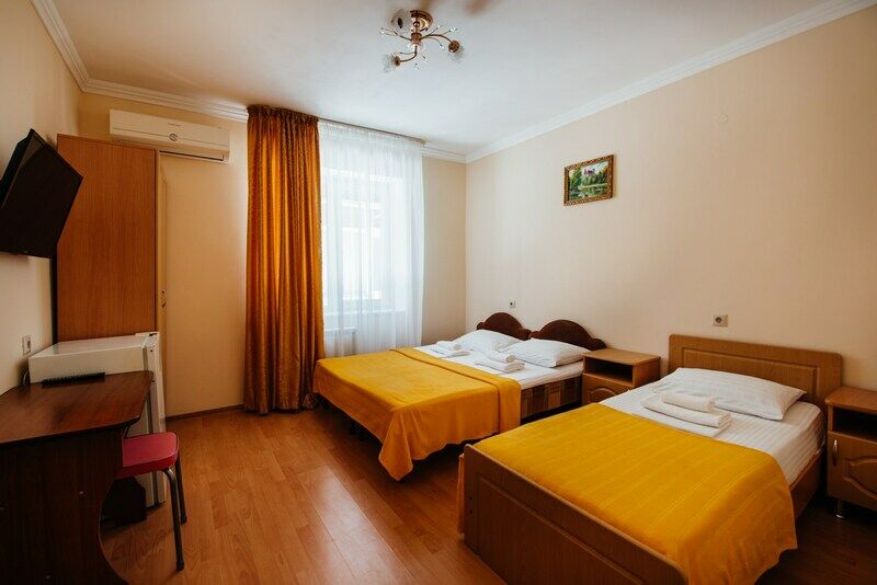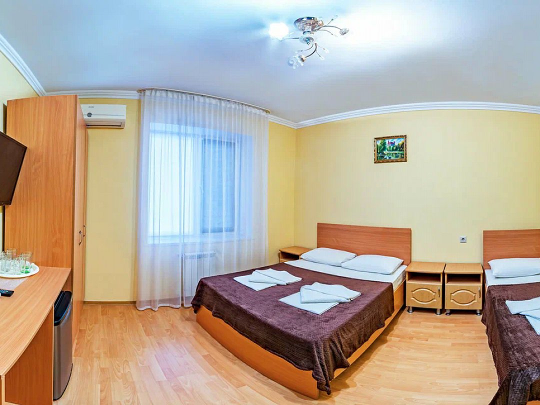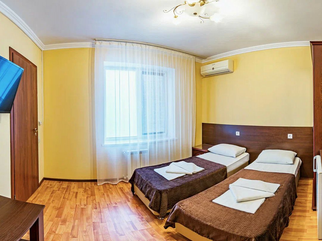 Номер оборудован всем необходимым для комфортного проживания: телевизор, сплит-система, двуспальная кровать или две односпальных кровати, прикроватная тумбочка, шкаф, мини-холодильник, журнальный столик, WI-FI. В номере имеется собственная ванная комната.