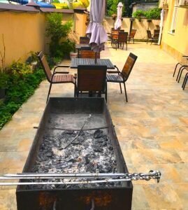 На территории имеется свой дворик со столиками на открытом воздухе, где находится мангал для приготовления шашлыков.