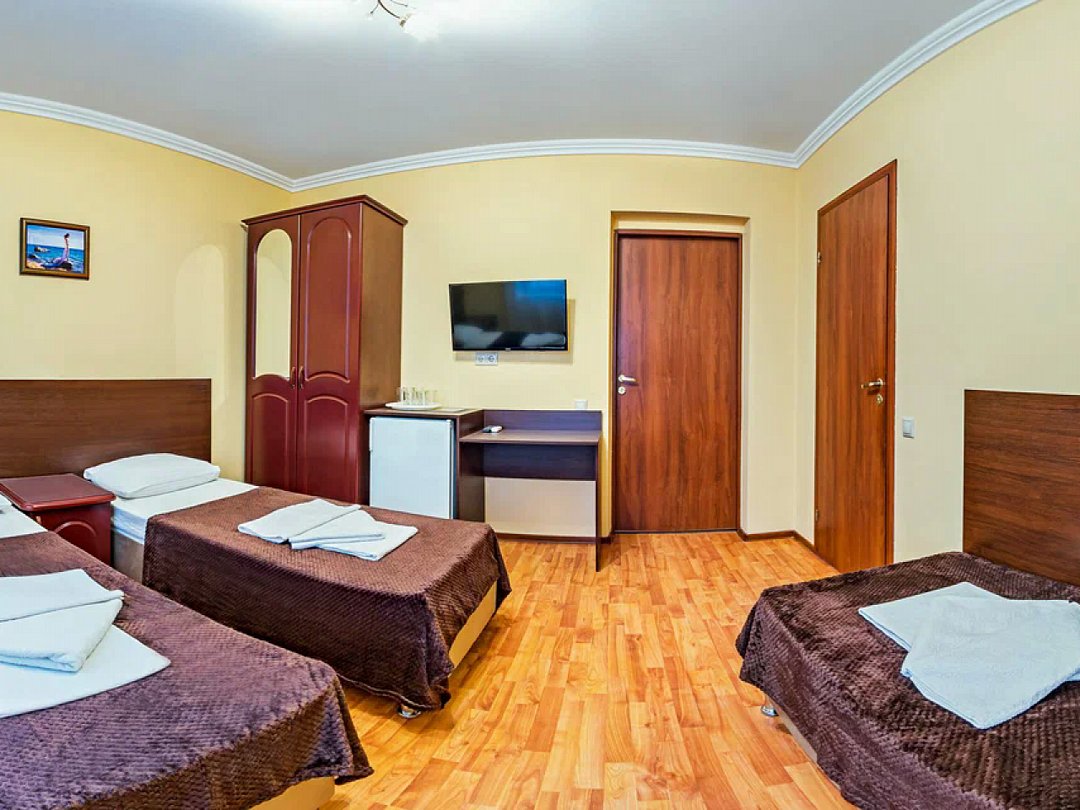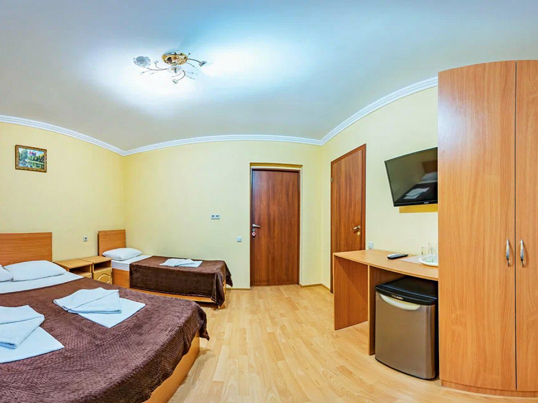 В номере имеются все удобства для комфортного и приятного проживания: телевизор, сплит-система, двуспальная кровать и односпальная кровать или три односпальных кровати, прикроватная тумбочка, шкаф, мини-холодильник, журнальный столик, WI-FI. В номере имеется собственная ванная комната.