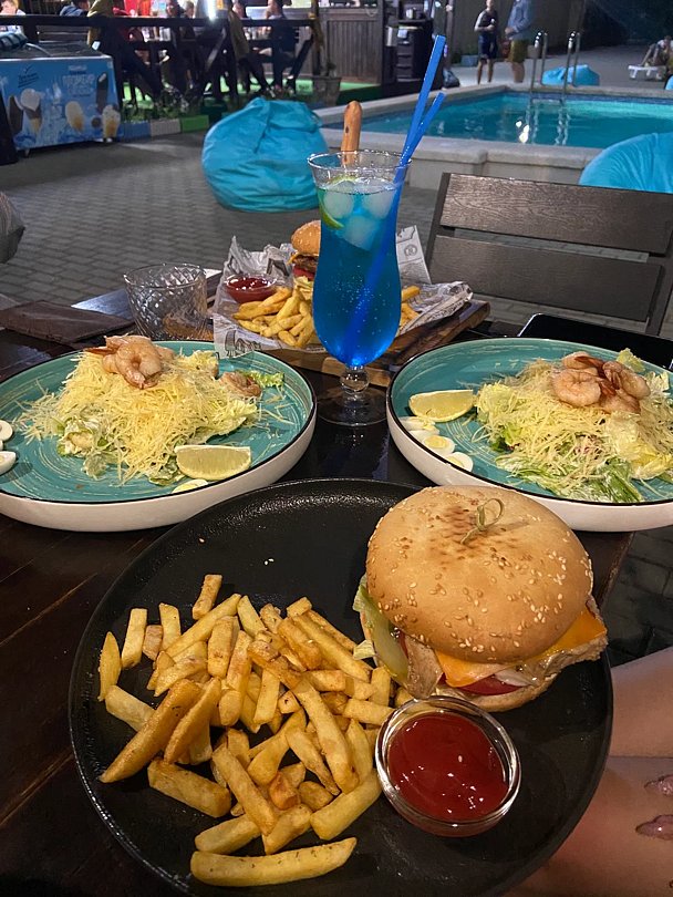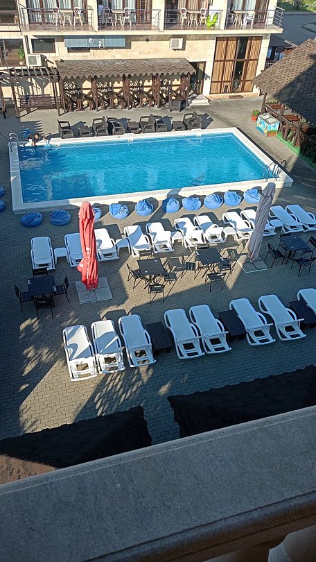 Вид из номера: на бассейн, во двор