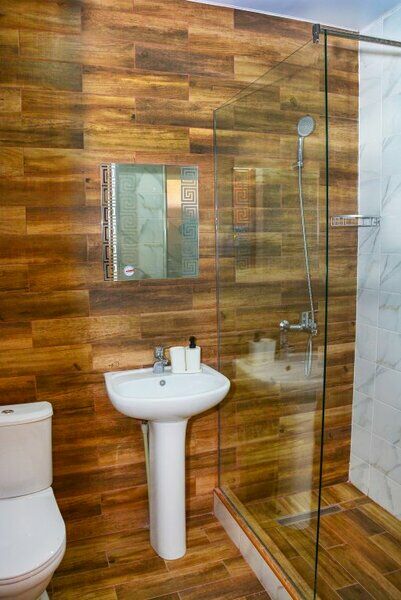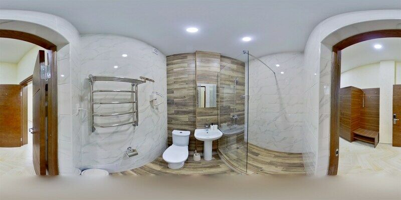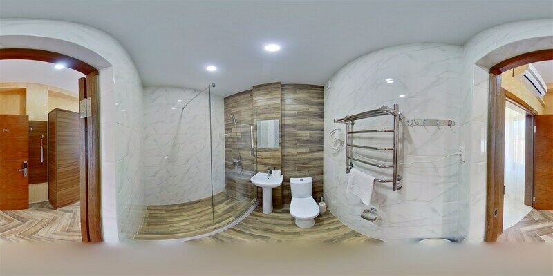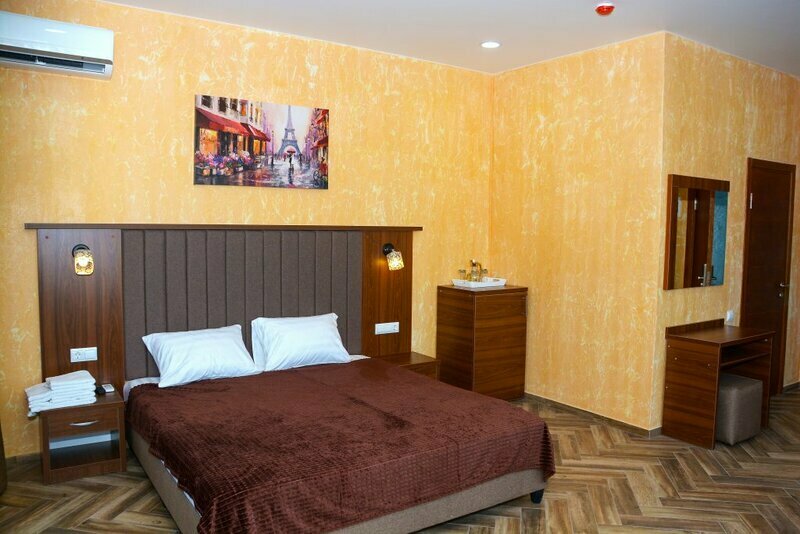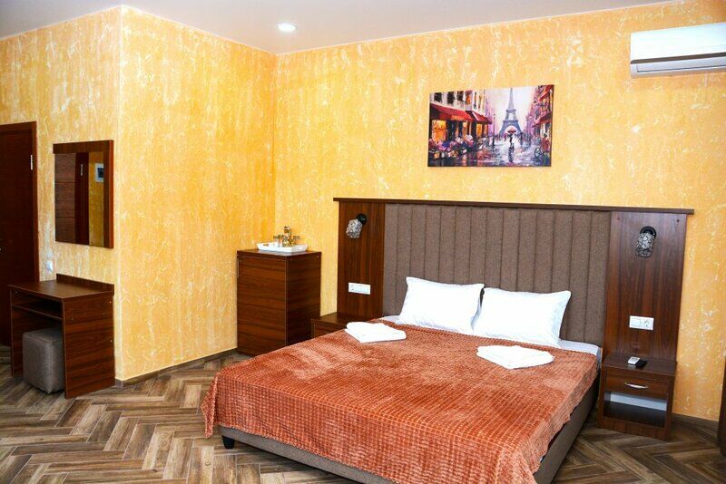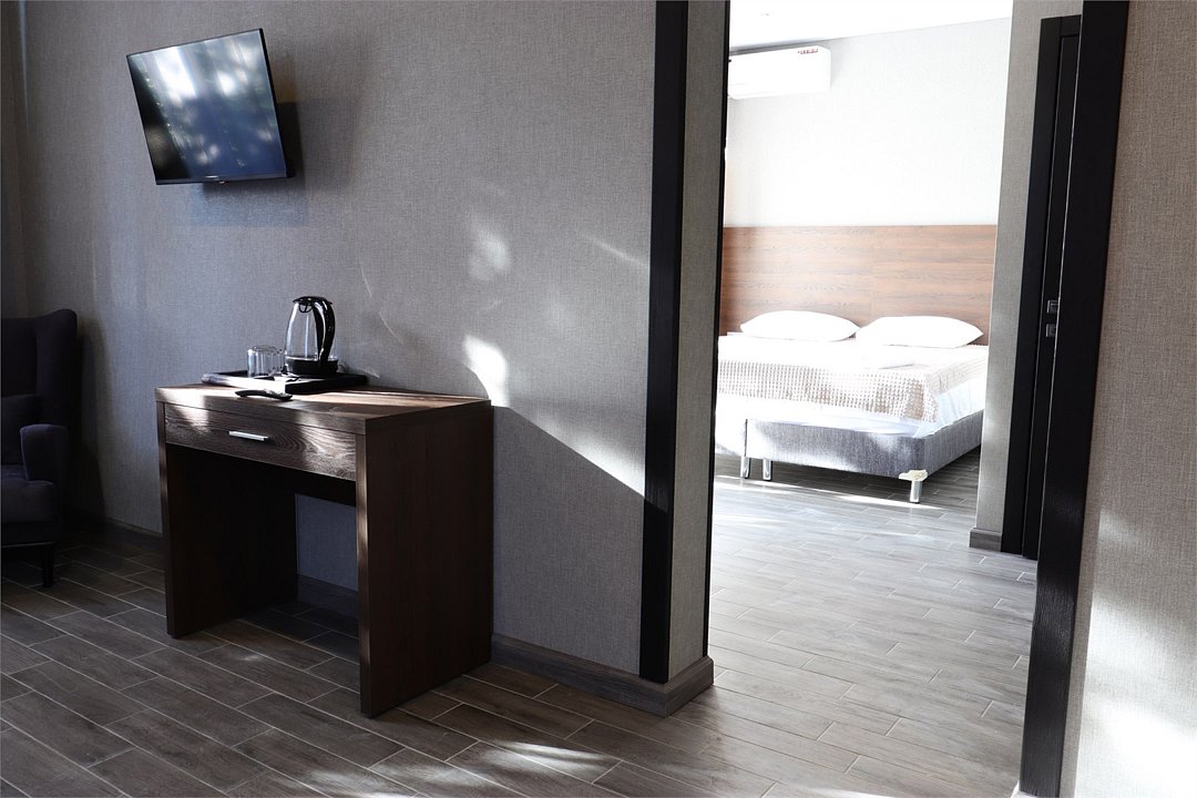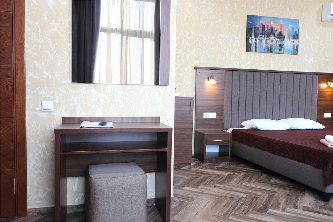 Сплит-система, холодильник, LED телевизор, удобные кровати: двуспальная (основное размещение), односпальная и раскладная-кровать (дополнительное размещение), прикроватные тумбочки, столик с зеркалом, шкаф. Санузел в номере.
