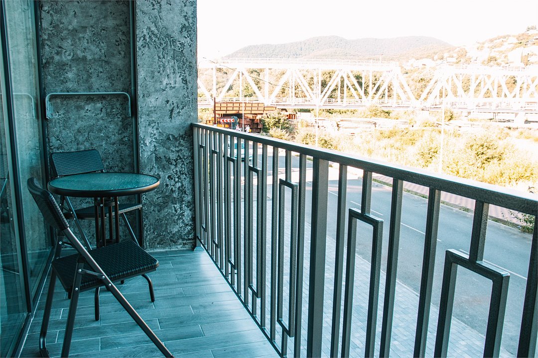 Стандарт с балконом располагается на 2−3−4 этажах, вид на реку либо во двор на бассейн.