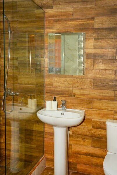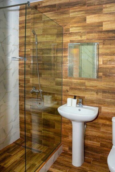 Холодильник, LED телевизор, удобные кровати: двуспальная (основное размещение), две односпальные кровати (дополнительное размещение), прикроватные тумбочки, столик с зеркалом, шкаф. Санузел в номере.