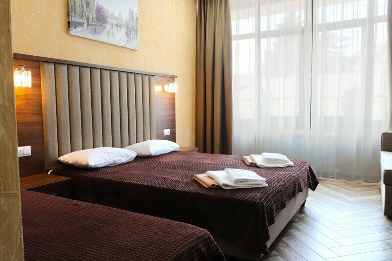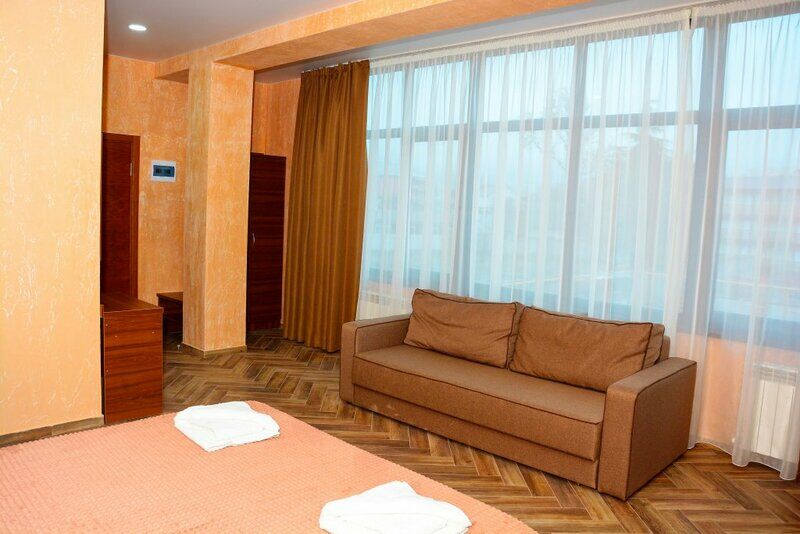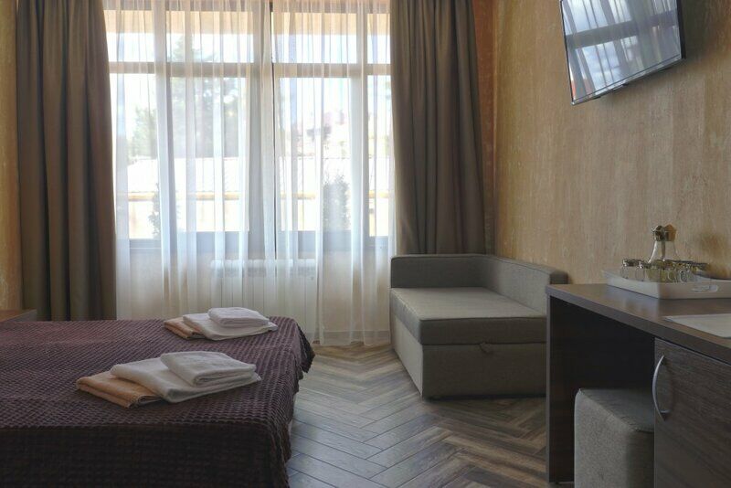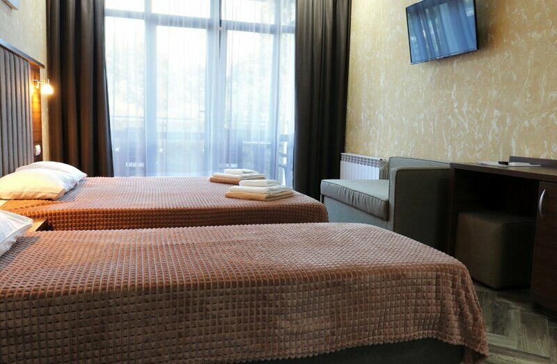 Семейный отдыхДостоинстваПешком до пляжа около 5 минут. Бассейн работает до 23 часов, его глубина небольшая, подходит для детей. В номере при заселении есть чистые полотенца и халаты. Удобно, что в комнатах есть балкон: можно посушить одежду или попить чай на свежем воздухе. Можно быстро добраться до Свирского водопада.