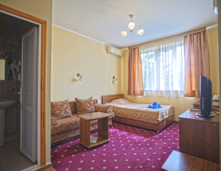 Путешествие с семьейОдин из лучших , в сочинских реалиях.Место отличное ,до моря очень близко ,как раз обсохнуть когда возвращаешься с пляжа.Персонал вежлив и аккуратен. Горничная на нашем этаже убирается каждое утро. Мы жили на 4 этаже в двух местном номере с балконом.Детская площадка огромный плюс ,бассейн с подогревом если надо.Столовая внизу ,цены низкие ,пища вкусная , народу не много. Напротив парк аттракционов, но вечером совсем не шумно в номере, а тихо. Все рядом, очень много столовых и кафе, в 10 минутах есть ГиперМагнит. Рекомендую к отдыху