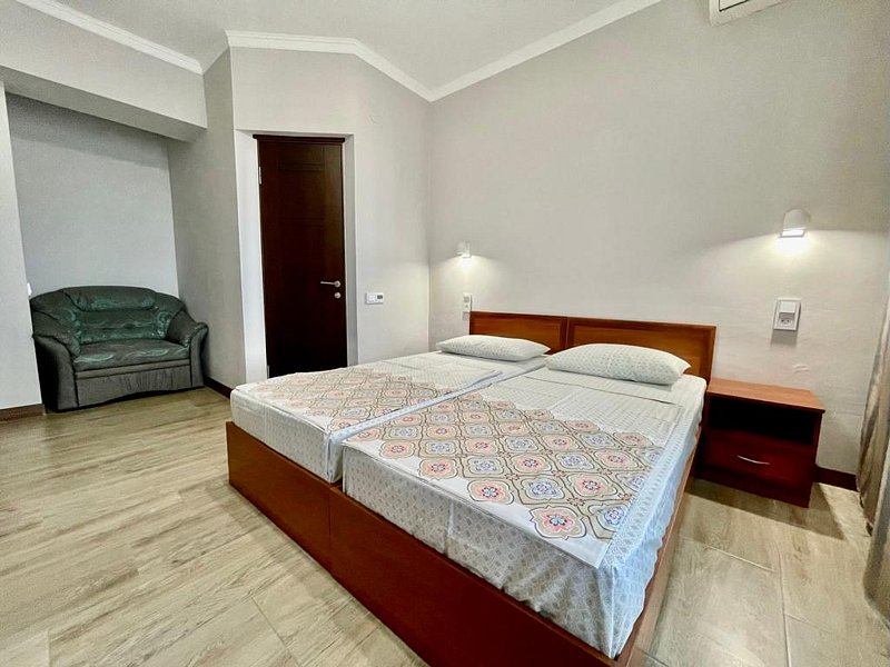 Семейный отдыхДостоинстваДостойный бюджетный вариант. Из окон открывался красивый вид, все было идеально чисто, до моря рукой подать, и рядом вся необходимая инфраструктура. Приедем еще, обязательно.
