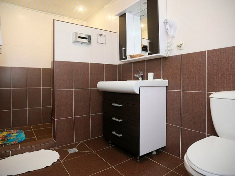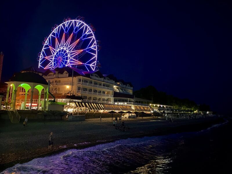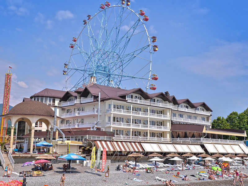 До удобного благоустроенного пляжа с мелкой галькой, массой услуг и развлечений в воде и на берегу всего 10 метров.