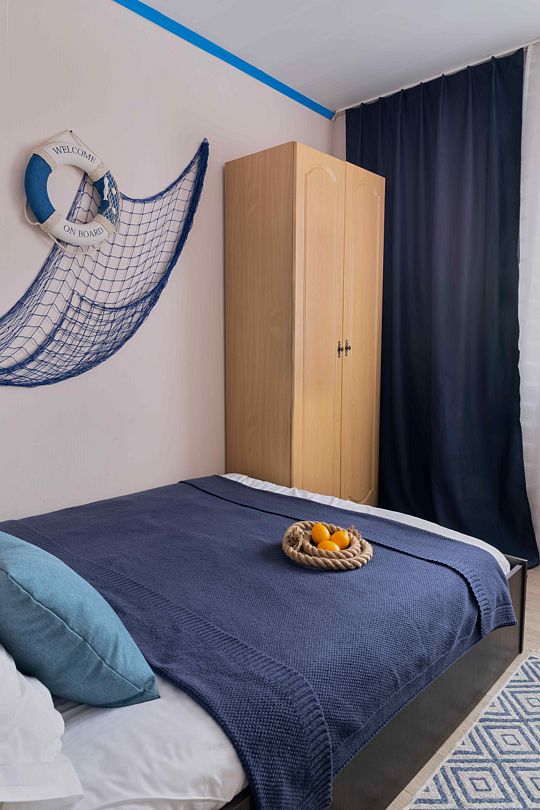 В номере имеется: платяной шкаф, прикроватная тумбочка, телевизор, холодильник, кондиционер.