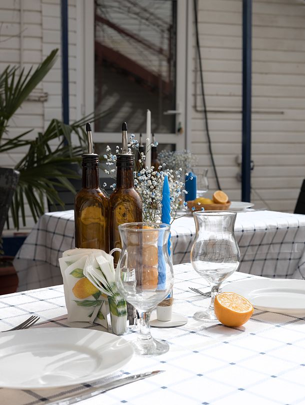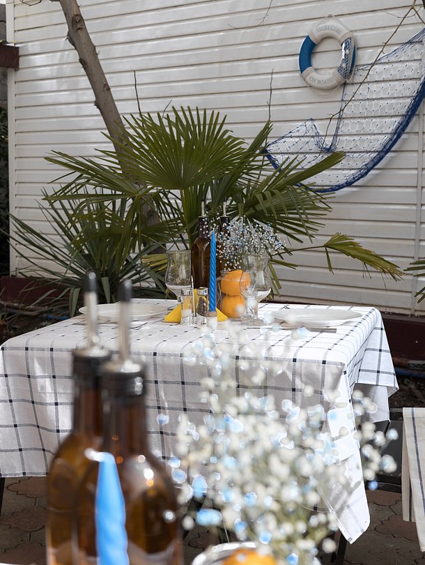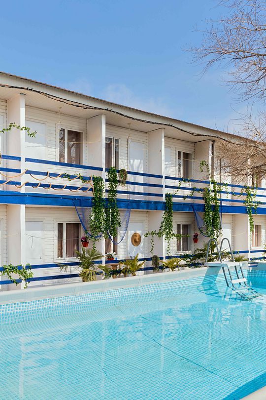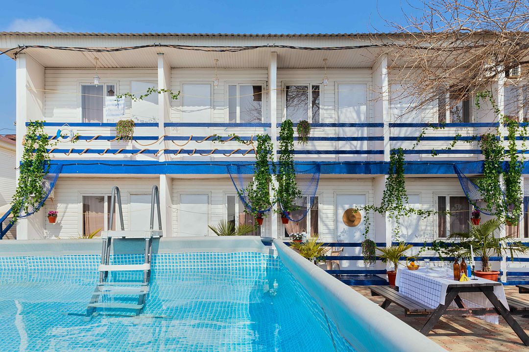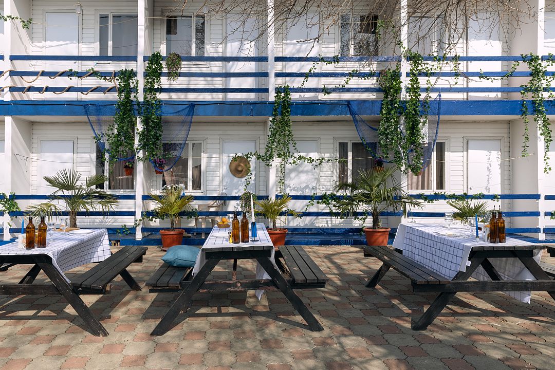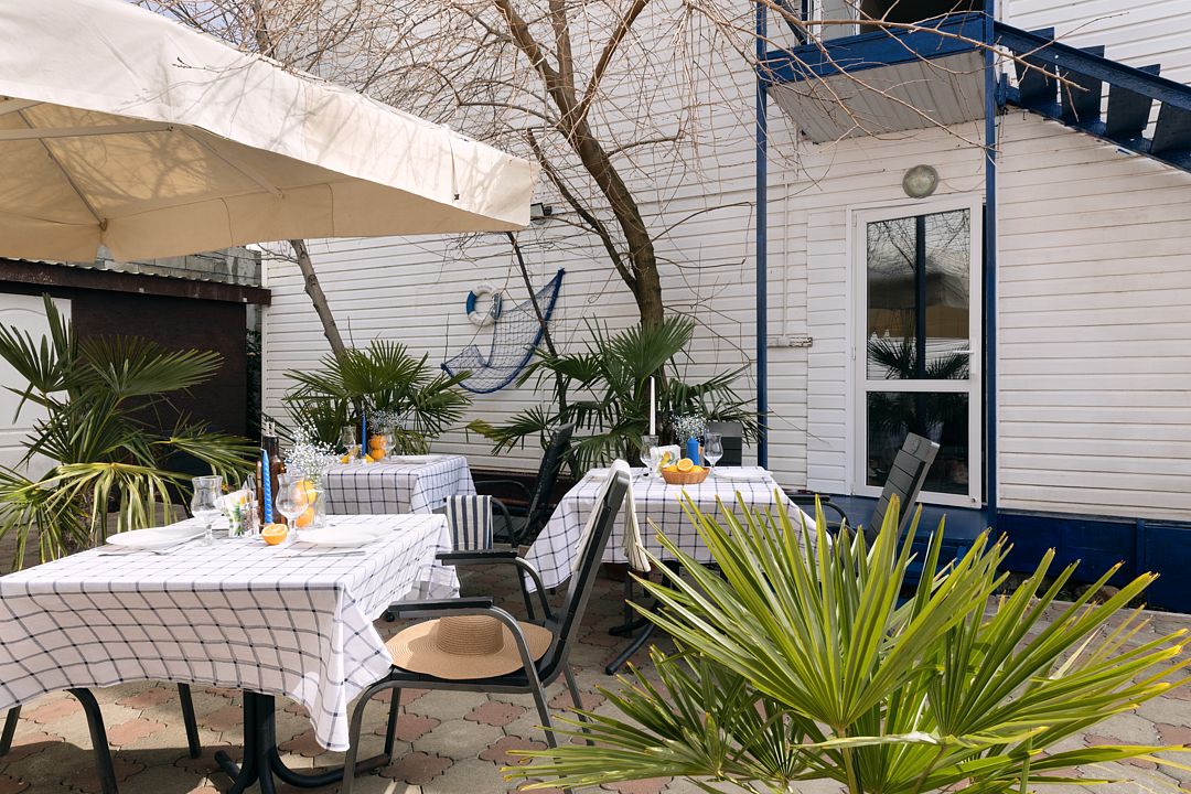 На территории базы есть бассейн с шезлонгами и уютные столики с зонтиками, которые создают идеальную атмосферу для утреннего кофе или расслабленного обеда под солнечными лучами.