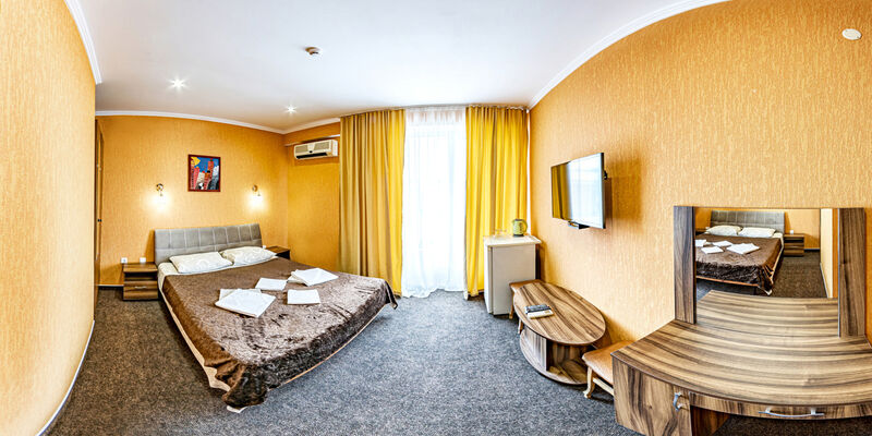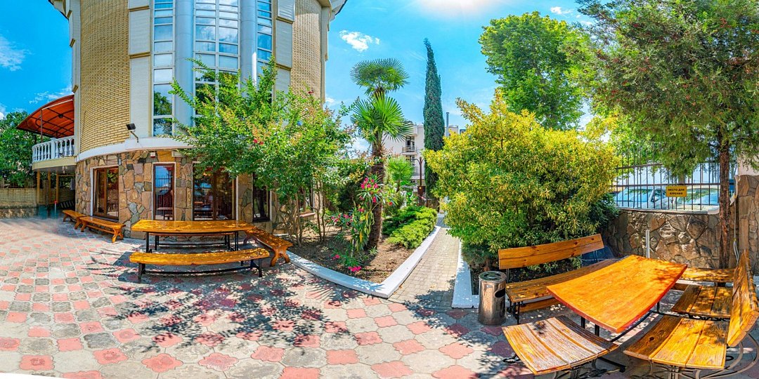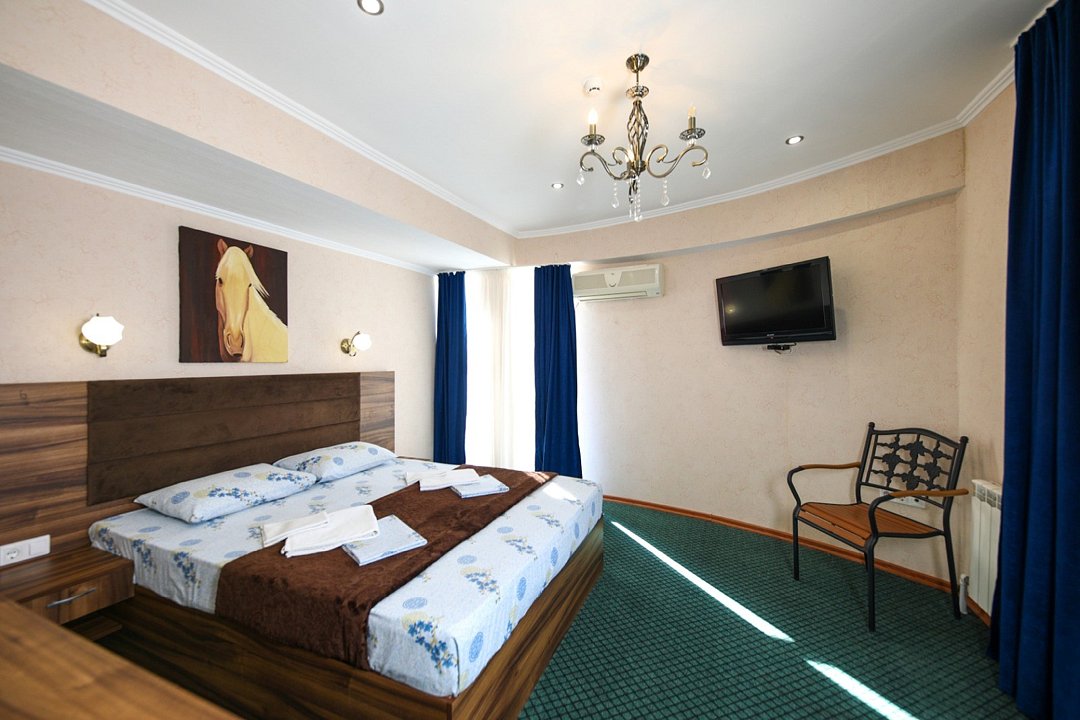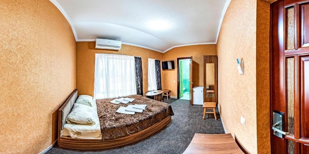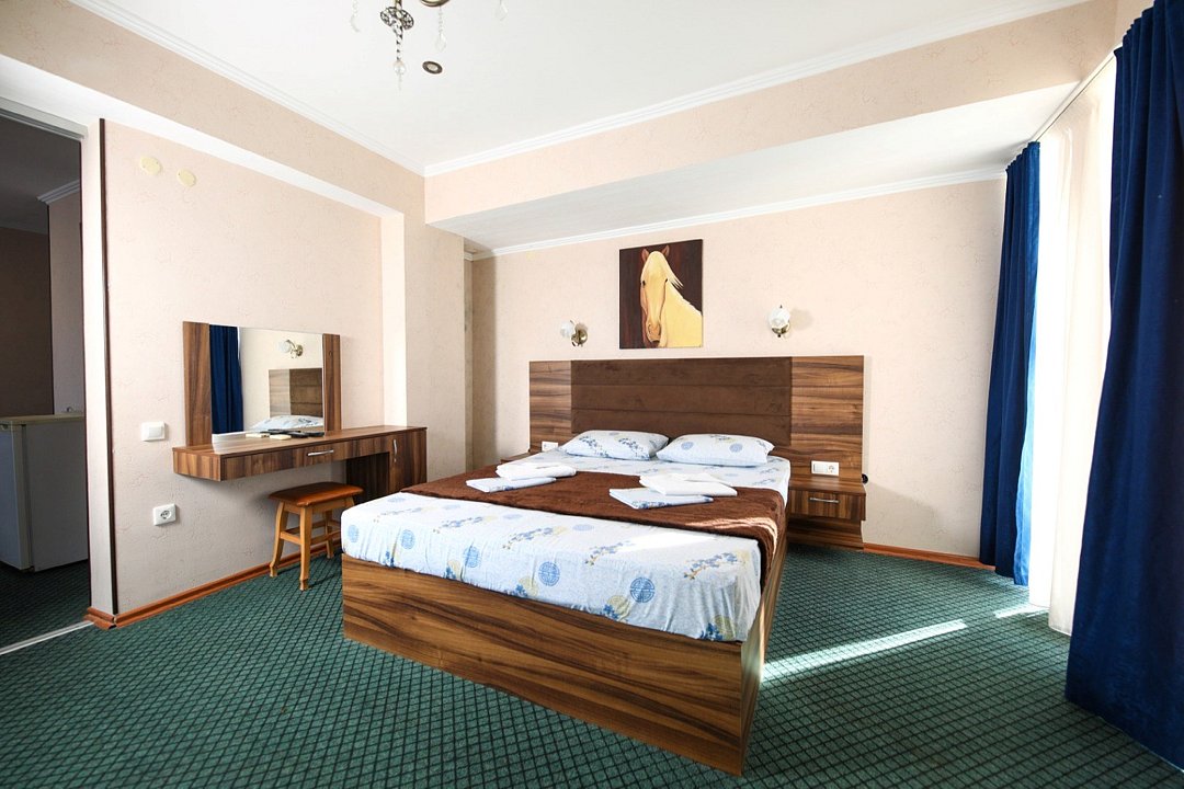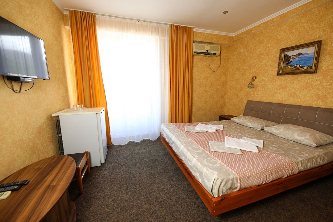 Номера выполнены в классическом стиле и оснащены самым необходимым. Вид из окна открывается на море или поселок. Общая зона отдыха доступна всем желающим.