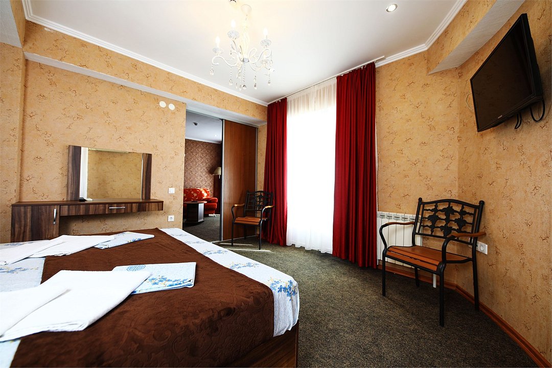 комфортабельный номер с личными удобствами , в котором может размещаться семья из пяти человек не стесняя себя ни в чем . в каждой комнате есть телевизор и кондиционерУслуги и удобства
