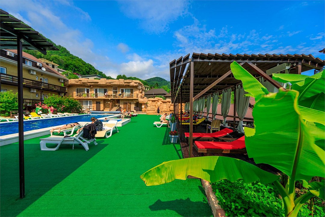 На территории отеля, возле бассейна, расположен аэрарий. Приезжайте и принимайте воздушные ванны, загорайте с максимальным комфортом на лоне природы Черноморского побережья и Кавказских гор в Лазаревском!