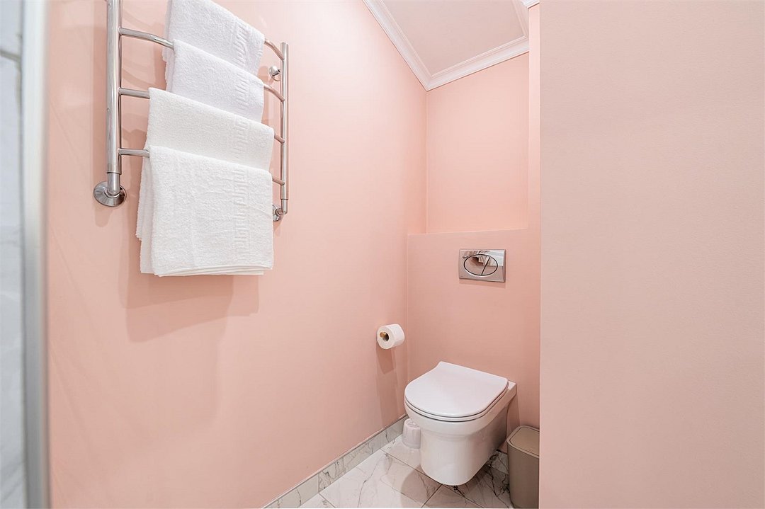 Просторный номер представляет собой отдельно стоящий 2-х уровневый 3-х комнатный коттедж.