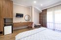 спутниковое телевидение, Wi-Fi, интернет, кондиционер, светильник, фен, душевая кабина, банные полотенца, пляжные полотенца, тапочки, гигиенические средства, балкон, балкон с красивым видом, двуспальная кровать, гладильная доска, ортопедический матрас, тумбы, стулья, журнальный столик, зеркало, набор посуды, сейф, раковина, отопление, кулер на этаже, вид во двор, стаканы, туалетный столик, туалет, сушилка для белья, раскладное кресло, телевизор с плоским экраном, мини-холодильник, шкаф-купе, гостиничная парфюмерия, вид на горы, вид на бассейн, услуги прачечной (платно), вешалки-плечикиВ гостиничном номере