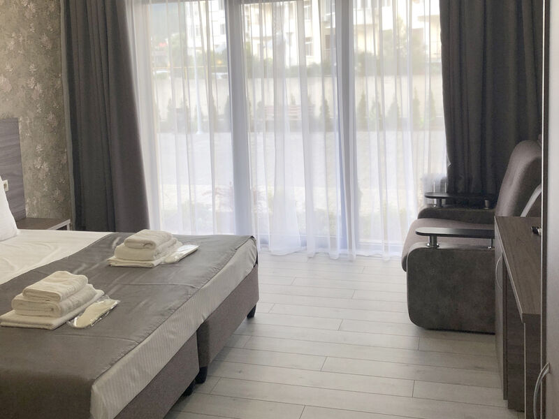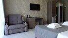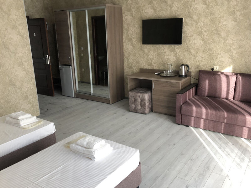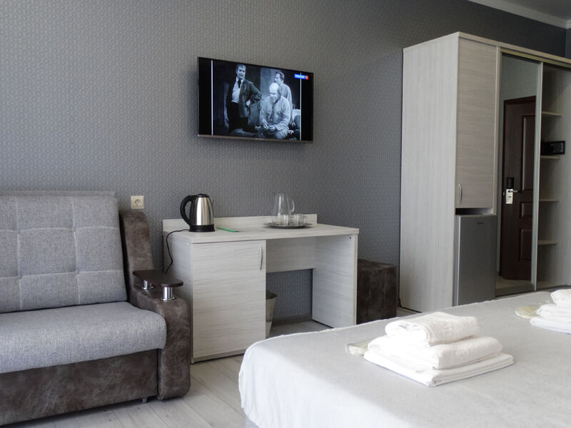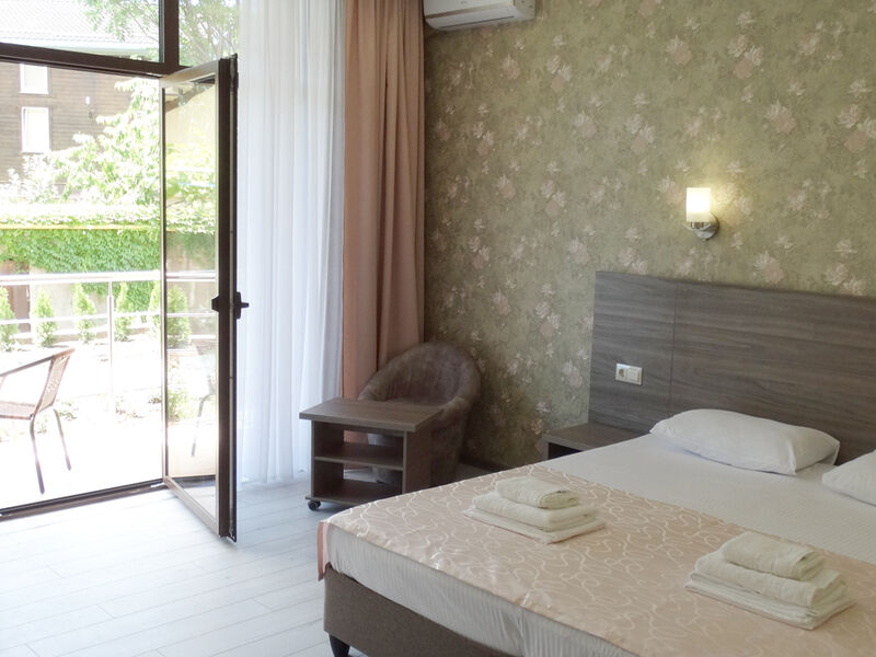 Трехэтажный корпус отеля расположен в тихом и зеленом районе среди малоэтажной застройки. Гостей ожидают однокомнатные номера категории Стандарт с балконом и без него. В номера классический интерьер, выполненный в приглушенной цветовой гамме, везде есть санузел с душем, кондиционер и набор необходимой бытовой техники. В общей сложности жилой фонд рассчитан на размещение 72 человек.