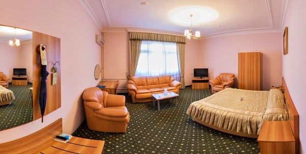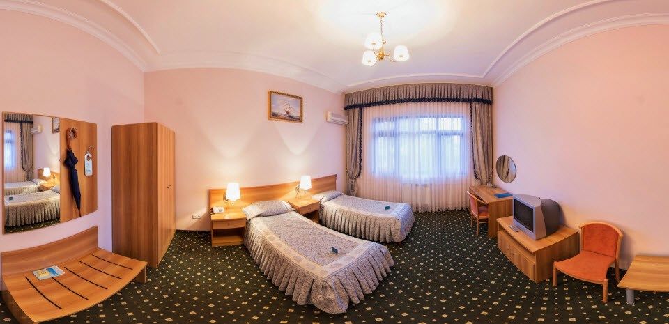 Оборудован современной комфортабельной мебелью. Рассчитан на 2 основных и 1 дополнительное место. В номере две раздельные или одна двуспальная кровати, ванная комната с душевой кабиной или ванной, телевизор, мини-бар, кондиционер, сейф.Услуги и удобства
