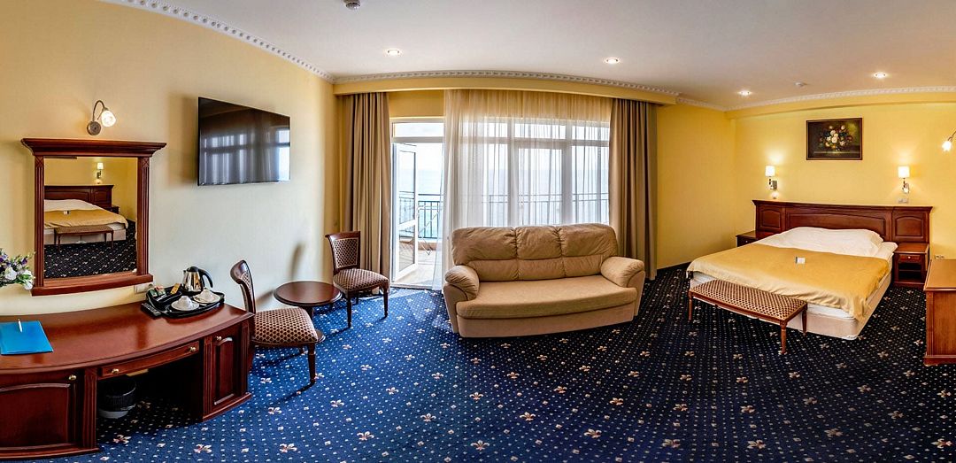 Оборудован комфортабельной мебелью. В номере одна двуспальная кровать, ванная комната с большой ванной, кондиционер, телевизор, мини-бар, сейф. Все номера категории имеют вид на горы и частично на море.Услуги и удобства