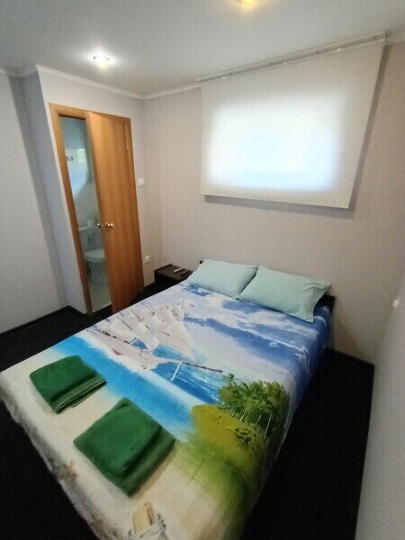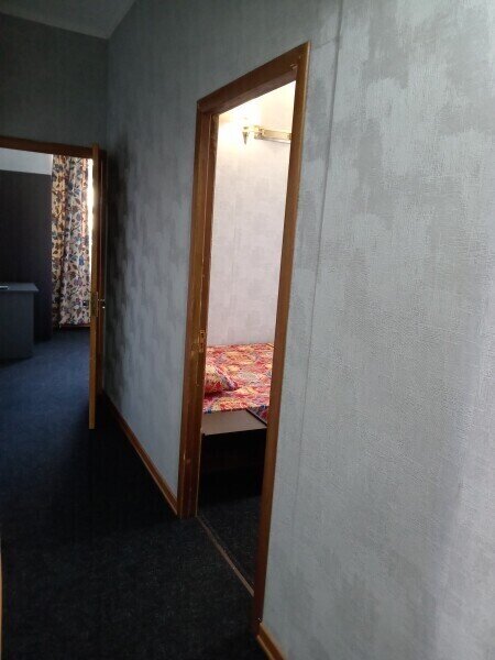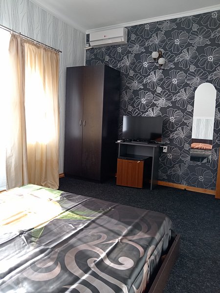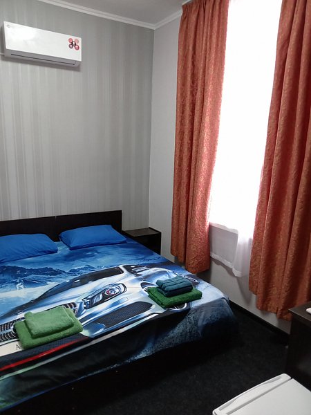 Двухкомнатный номер стандарт, расположен на втором этаже гостиницы, общей площадью 21 кв.м. Одна комната проходная. В номере представлены двуспальная кровать, двухместный раскладной диван, санузел. Оснащен кондиционером, ТВ, шкафом, прикроватными тумбочками.