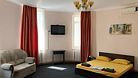 Двухместный полулюкс без балкона, расположен на первом этаже гостиницы, общей площадью 13 кв.м. В номере представлены угловой диван или двуспальная кровать, санузел. Оснащен кондиционером, ТВ, шкафом, прикроватными тумбочками.