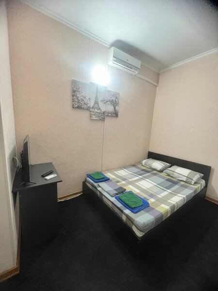 Двухместный номер стандарт, расположен на всех этажах гостиницы, общей площадью 14 кв.м. В номере представлены двуспальная кровать, санузел. Оснащен кондиционером, ТВ, шкафом, прикроватными тумбочками.