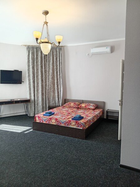 Четырехместный полулюкс с балконом, расположен на третьем этаже гостиницы, общей площадью 29 кв.м. В номере представлены двуспальная кровать и диван раскладной, санузел. Оснащен кондиционером, ТВ, шкафом, прикроватными тумбочками.