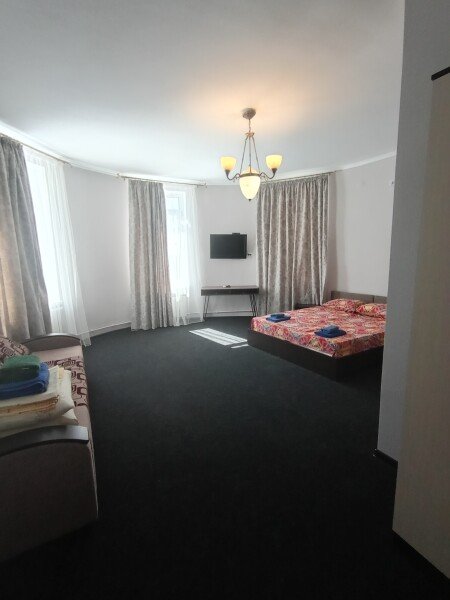 Трехместный полулюкс с балконом, расположен на третьем этаже гостиницы, общей площадью 21 кв.м. В номере представлены двуспальная кровать и диван раскладной, санузел. Оснащен кондиционером, ТВ, шкафом, прикроватными тумбочками.
