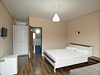 Номер двухкомнатный укомплектован двуспальной кроватью и двухярусной кроватью, также в номере есть: