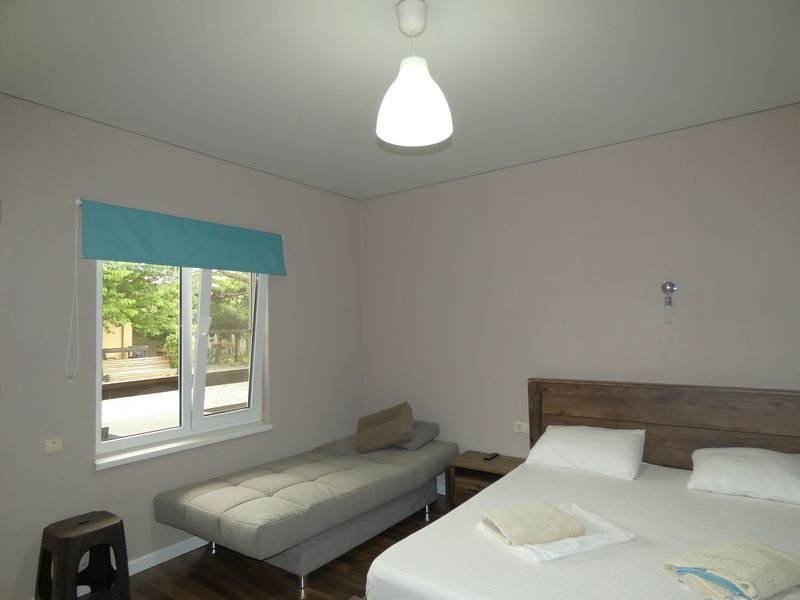 Дом ориентирован на семейный отдых. Для проживания гостей подготовлены комфортные номера, укомплектованные кондиционером, холодильником, телевизором, Wi-Fi, санузлом. Горячая вода подается круглосуточно.