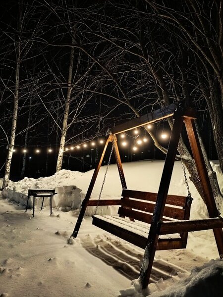 На улице гостей ожидает столик со стульями и мангал, где можно приготовить вкусные блюда на огне. После парной вы можете освежиться в пруду, что подарит вам ощущение прохлады и расслабления.
