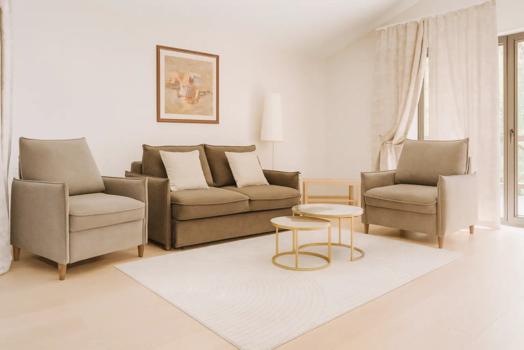 На территории есть собственный песчаный пляж на берегу водоёма, оборудованный шезлонгами и зонтами, где можно загорать, купаться или любоваться закатами.