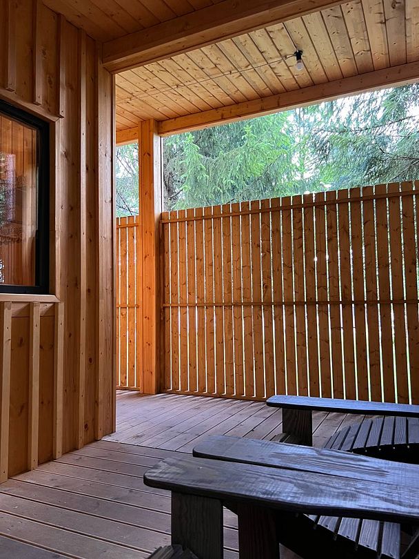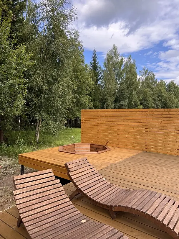 На террасе дома установлена персональная горячая купель Фурако (5000₽/вечер)
