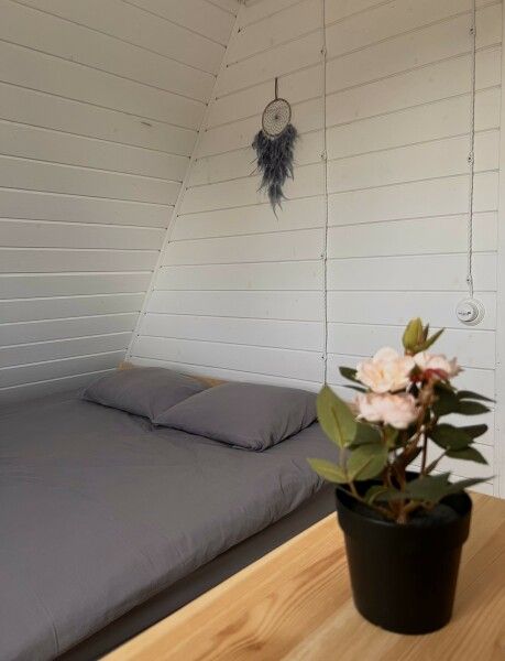 - двуспальный диван на 1м этаже и двуспальный матрас под крышей, ортопедические удобные матрасы, хлопковое постельное белье;