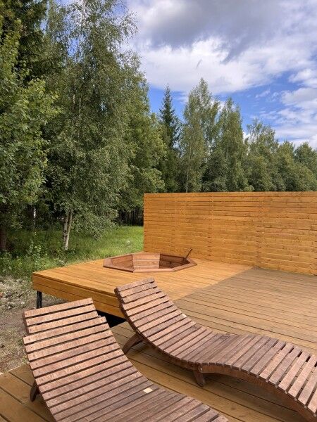 На террасе дома установлена персональная горячая купель Фурако (5000 ₽/вечер).