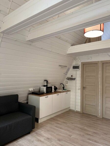 двуспальный диван и двуспальный матрац под крышей, с/у, душ, мини-кухня