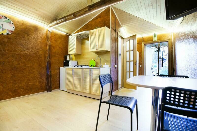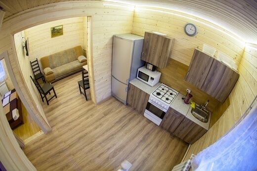 Коттедж оборудован кухонным гарнитуром, холодильником, газовой плитой, микроволновкой, телевизором.