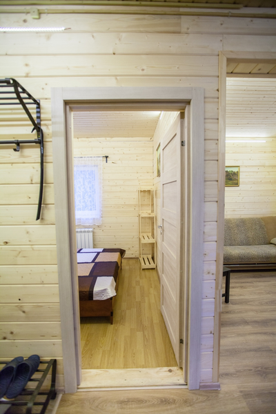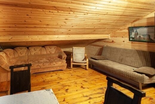 Двухкомнатный улучшенный номер с балконом на втором этаже бревенчатого дома для проживания до шести человек. Оборудован мини-холодильником, чайником, телевизором.
