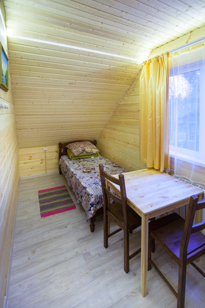 Номерной фонд рассчитан на одновременное проживание 50 гостей. Прилегающая территория располагает к пешим прогулкам, сбору ягод и грибов. Окрестные пейзажи никого не оставят равнодушными. Вечером для гостей предложено посещение бани, вечер в беседке, приготовление блюд на открытом огне.