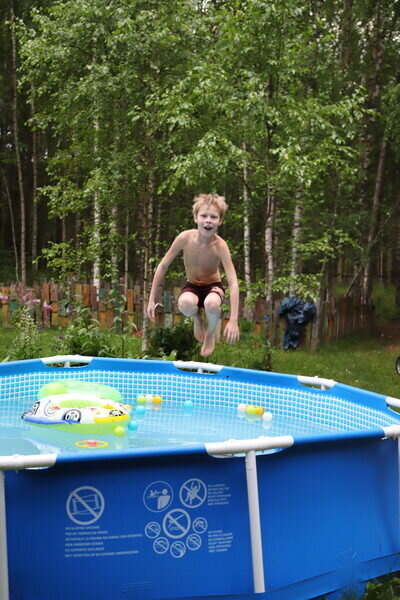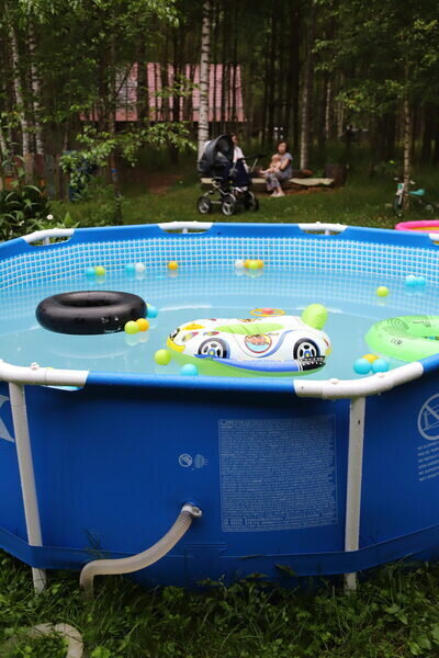 Тип бассейна: открытый бассейн, каркасный бассейнДля развлечений на свежем воздухе отлично подойдет летний бассейн, установленный на лужайке среди деревьев.