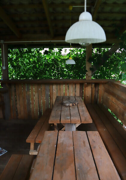 Своя беседка, оборудованная кухня, санузел, спальные места.