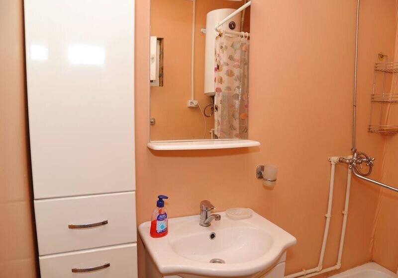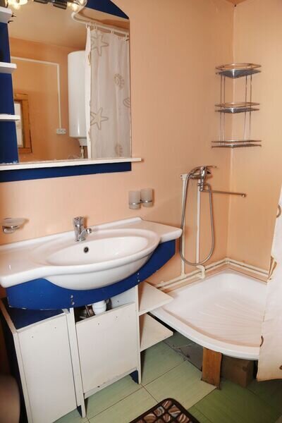 Санузел с душем, кухня с посудой для еды и готовки. Откидная двуспальная кровать.