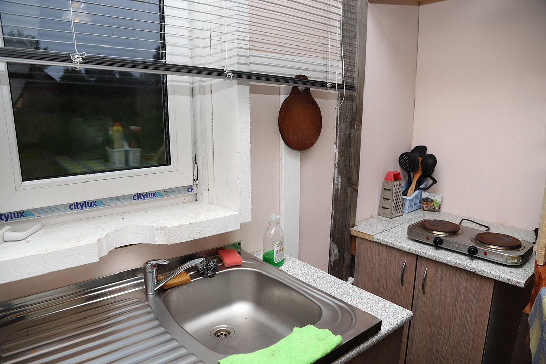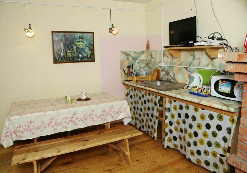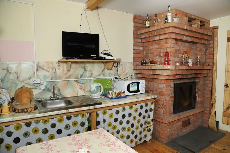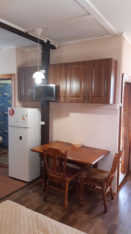 В доме все новое. Односпальная кровать откидная, можно убрать в случае необходимости. Полностью оборудованная кухня, санузел, спальные места. Рядом беседка.
