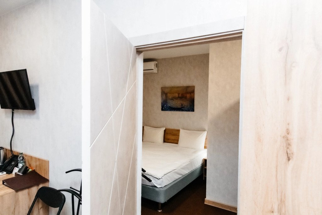 На втором и третьем этаже здания расположены номера. Оснащение зависит от выбранной категории номера.
