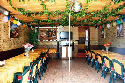 - 1 дом: 6 спален, кухня, зал 40 кв.м. с камином и цветомузыкой на 30 персон, ТВ, ДВД, караоке, сауна с купелью;